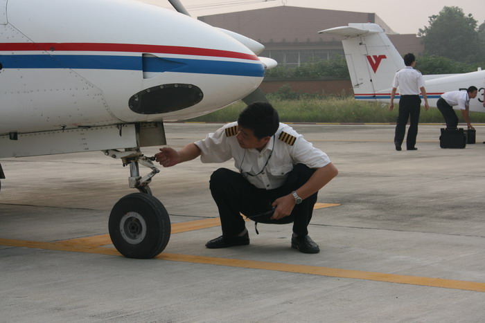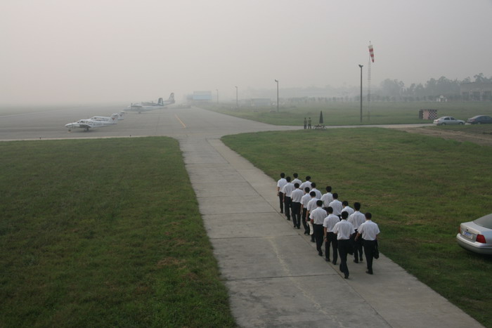 闷热的天气,一大早就让人领略着秋老虎的利害。早上7:20参加飞行的教师和学生驱车出场,保障飞行的各类人员各就各位。机前指示、飞前检查、一切都在有条不紊的进行,8点整,当小双发3591、夏延3621、奖状3644号陆续起飞,伴着飞机轰鸣声奏响的蓝天交响乐,拉开了2007年下期飞行训练的序幕。