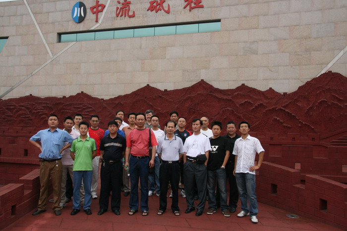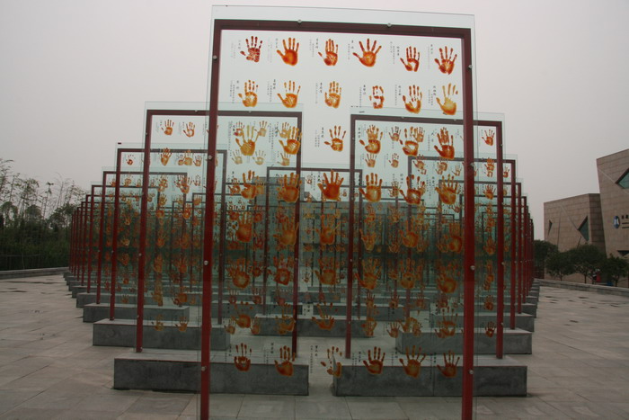 虽然天公不作美,下起了细雨,但是大家的热情没有丝毫的动摇。没有了平时的玩笑,一踏进建川博物馆的大门,便立刻被一种庄严肃穆包围着。因为我们走进的地方,真实地记录着中国共产党人领导中国人民从水深火热中走出来的艰辛历程。走进这座神圣的殿堂,大家每一根神经都被历史的一幕幕触动着。在解说员的带领下,我们参观了以中流砥柱馆、正面战场馆、飞虎奇兵馆为主的抗战系列展馆以及 “ 中国抗日壮士(1931-1945)群雕广场 ” 和 “ 中国抗日壮士 —— 抗战老兵手模广场 ” 。
