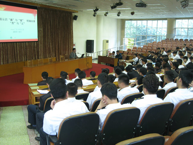 飞行四大队学生记者团严诚杰报道> 10月19日下午,分院党委副书记、纪委书记范军老师为四大队的全体同学上了一堂以“反腐、廉政”为主题的教育课,课堂上范老师丰富的内容让同学们受益颇多,明白老实做人、诚实为学、廉洁从业、幸福人生的基本道理。