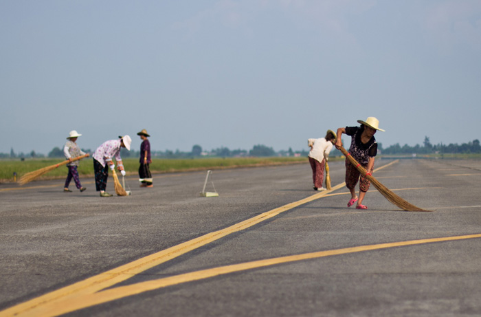 二是连续奋战,全面落实维护任务。值守人员发扬吃苦耐劳精神,不顾机场高温热浪“烘烤”,不顾遭遇疾风暴雨“侵袭”,争分夺秒,检查抢修。一周时间,完成2000米拦鸟网的架设、更换机场风向袋3个、更换泵房叶轮2个、对塔台卫生进行了全面大扫除、清扫了机场路面、检查维护驱鸟和场务车辆、更换煤气炮气罐、完善机场路面标线、机场割草紧锣密鼓的进行,确保机场相关设施设备运行正常。
