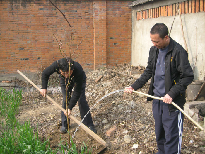 给树苗浇水、施肥