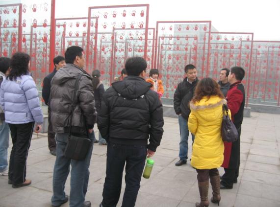 建川博物馆是由樊建川先生创建的,已建成的有抗战、民俗、红色年代三大系列10座博物馆。进入博物馆,最先映入眼帘的是一排排的手印玻璃墙,这就是老兵手印广场。广场保存了2000多个老兵的手印,他们最小的88岁最大的90多岁,手印是橘红色染成的,从远处看有一种很强的视觉刺激效果,当你深入其中的时候更让人感觉到震撼和感动,仿佛自己就在那个战火纷飞的年月里。当年正是这些丰华正茂的年青人用自己的双手挡住了敌人的进攻,挽救了国家和民族。