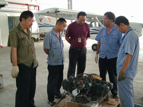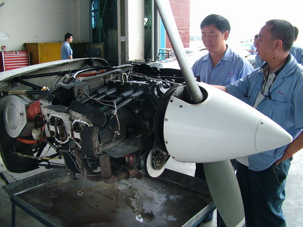 走进机务部生产维修计划控制室,张道新主任正在和几位中心干部研究工作。张主任指着挂在墙上的飞机维修动态板对笔者说“今天出动各型飞机21架,夏延B-3621飞机A检,西门诺尔B-3598飞机更换左发动机,2架塞斯纳172R飞机50小时定检,3架塞斯纳172R飞机加装ADSB系统,有70多名机务人员在工作岗位上加班工作。”