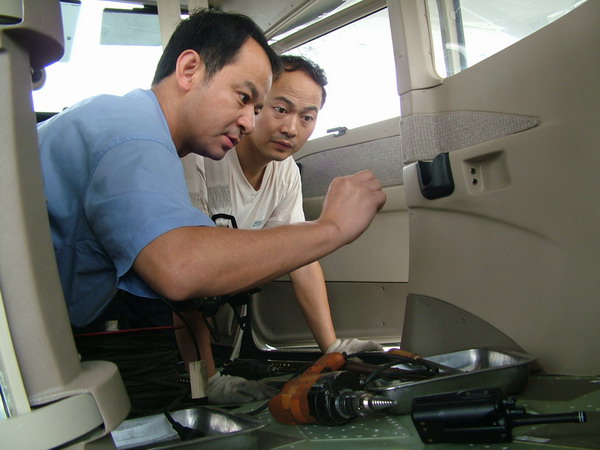 机械人员安装驾驶舱装饰板