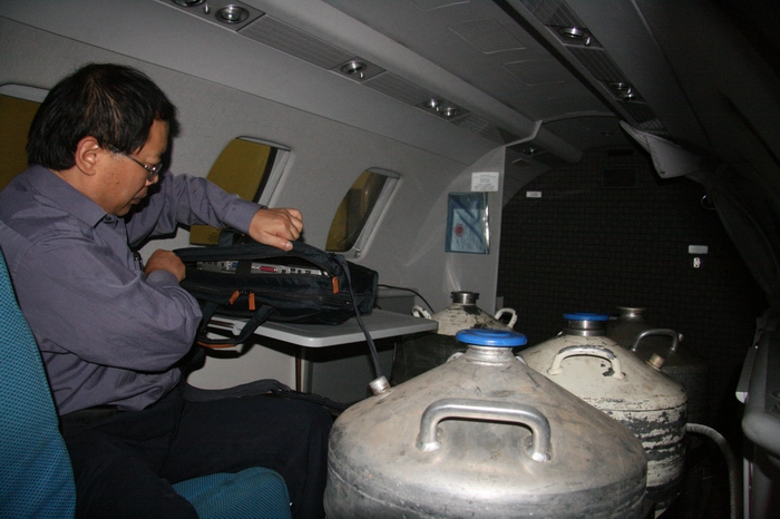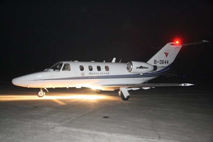 9月8日22点20分,当广汉分院机场结束了一天的繁忙训练,奖状B—3644却在夜幕中起飞,开始了首次四川省资源性降雨飞行任务。为了支持地方经济建设,造福四川人民,广汉分院从98年以来一直参与四川省人工增雨工作,多次受到省委、省政府的表彰。执行增雨任务的飞机,也从运七—100和夏延ⅢA、到今天的奖状喷气式飞机。据省人工影响天气办公室副主任孙林生、詹万志介绍:过去在广汉机场组织进行的都是应急性增雨,而此次增雨为资源性增雨。为了开发空中水资源,今年3月份省政府就召开了进行资源性增雨工作协调会,因为发生5.12大地震,这项工作便停了下来,而且由于地震不少水库受到不同程度的破坏,为了安全部分水库还放干了水。现在为了解决今冬、明春的工农业用水的困难,我们开始了该项工作。今天经过和广汉分院气象台工程人员的共同天气会商,决定今晚避开地震灾区,为川东南地区实施资源性人工增雨。