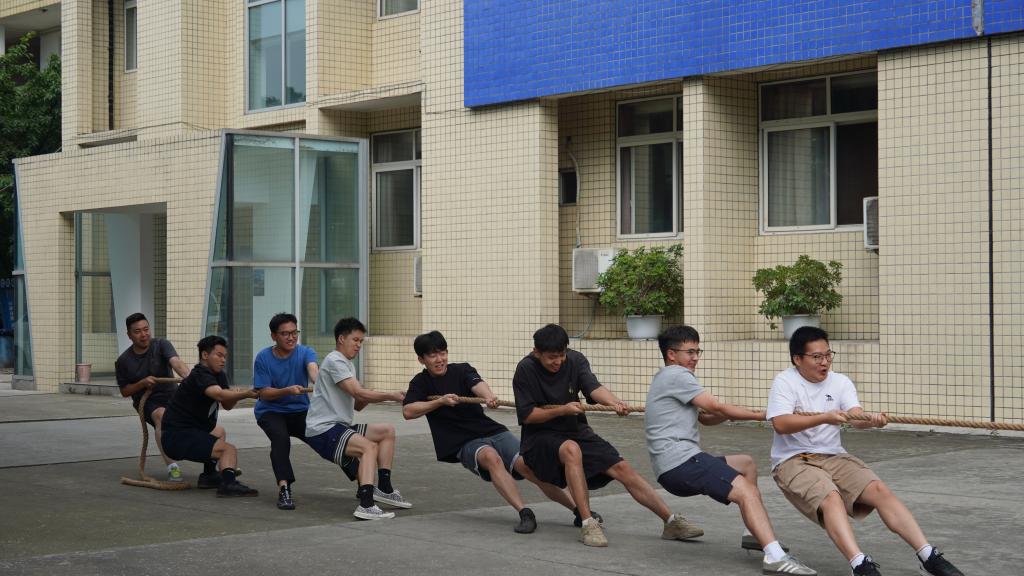 随着大队长潘俊一声哨响,比赛正式拉开帷幕。两个教学小组的学员们迅速压低重心,双脚如扎根大地的钢钉,双手紧攥拔河绳,指节因用力而微微泛白。“一二!一二!”的呐喊声整齐划一,回荡在赛场之上——这声音里,没有了座舱里的轻声指令,却多了一份并肩作战的热血;没有了仪表盘上的精准数据,却多了一份彼此信任的默契。