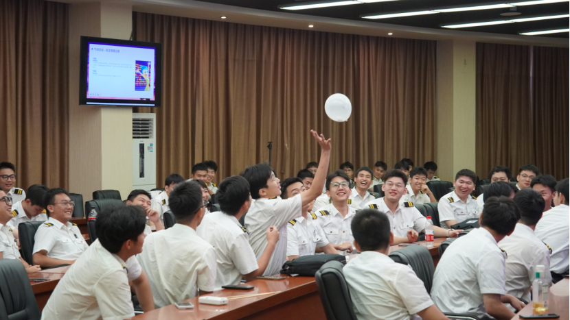 观影结束后,互动体验环节“气球传递问答”随即展开。工作人员提前在气球内放入定制化问题卡片,内容紧扣飞行学员成长需求,涵盖“训练中感到焦虑时,你会采用哪些方法快速平复状态”等议题。随着音乐节奏传递气球,音乐停止时手持气球的学员需拆开气球并分享答案。这种互动分享方式,让学员们不仅深化了对情绪价值的理解,更增进了彼此间的心理联结。